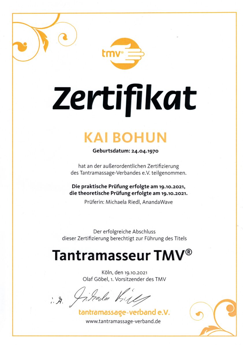 Seit 2020 Mitglied im Tantramassage-Verband e.V.