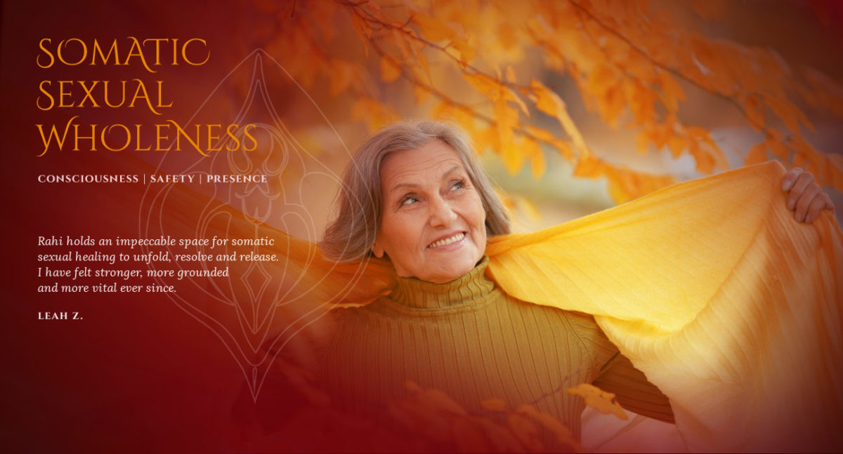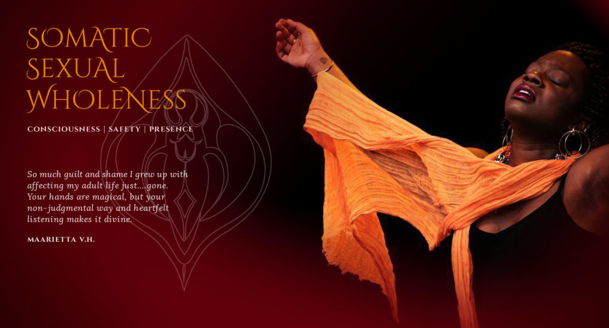 Somatic Sexual Wholeness is a unique blend of Mindful Inquiry, Trauma Release Exercises, Neuro-Affective Touch, Sexological Bodywork and Inner Pelvic Freedom to re-store and expand sexual health, wholeness, and well-being.